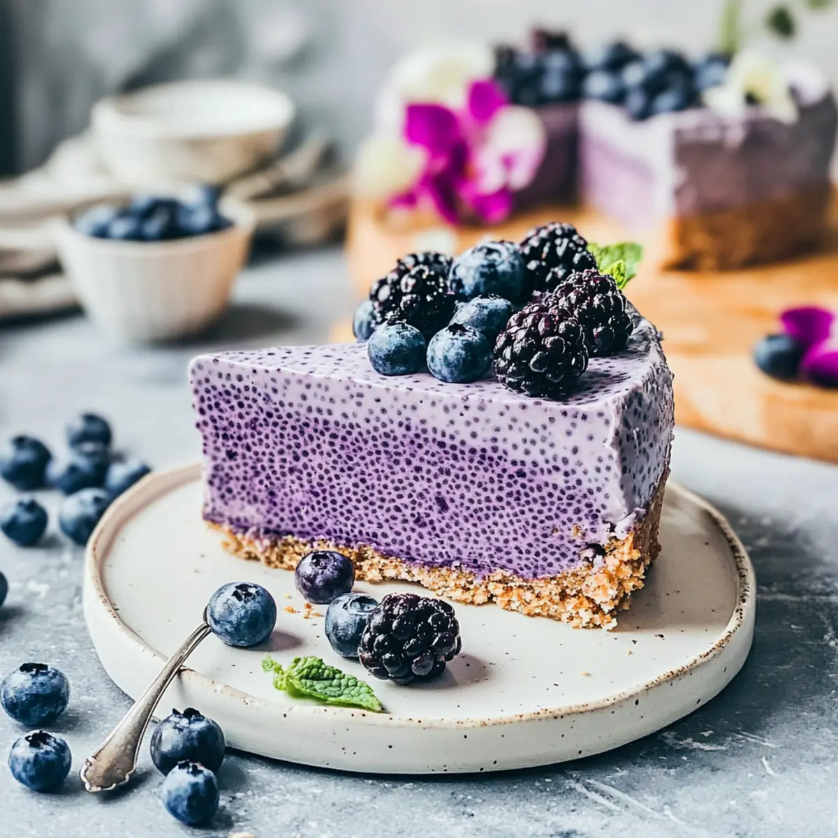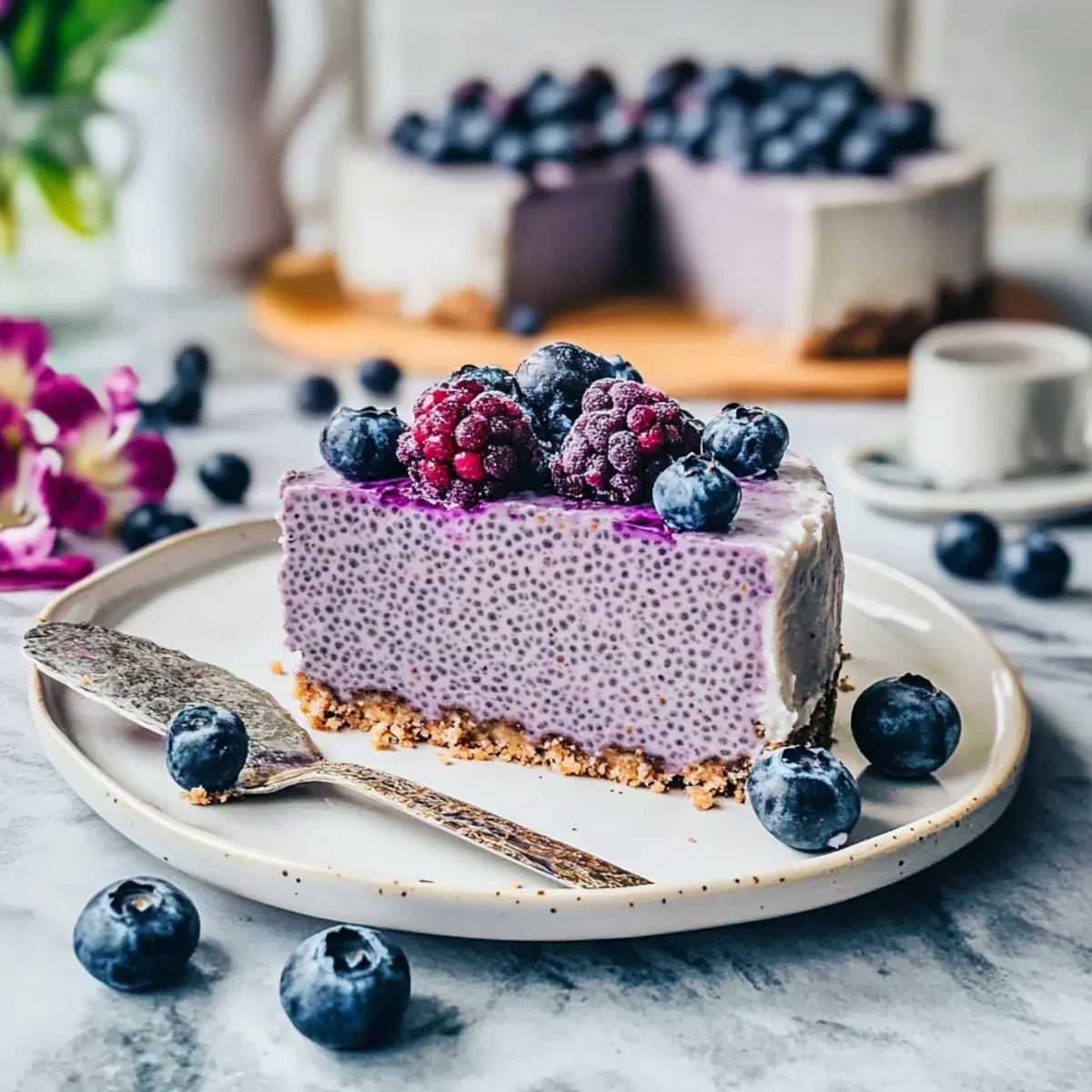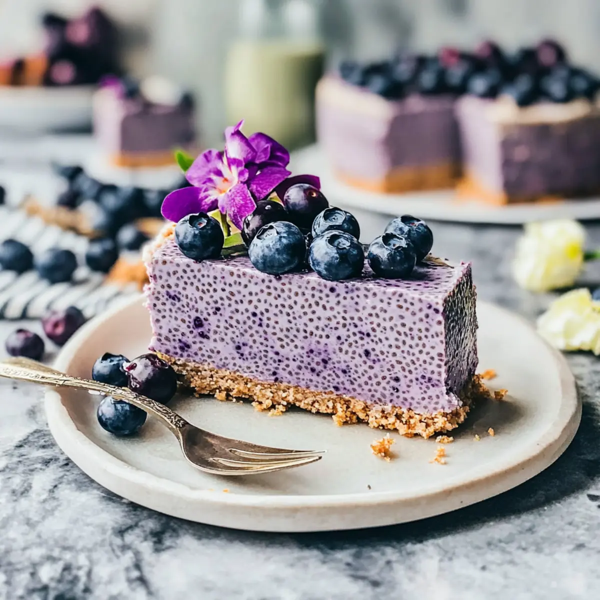 Creamy Blueberry Chia Pudding Cake That's No-Bake Delicious