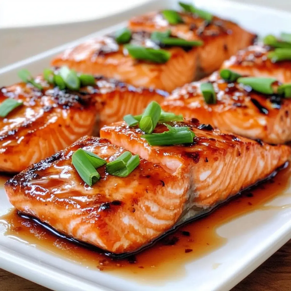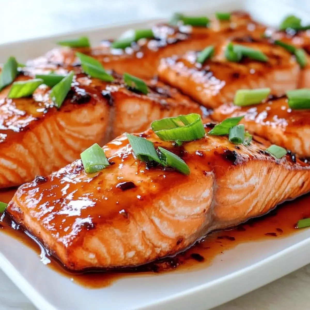 - Transfer the salmon to a serving platter, pour reserved sauce over, and garnish with scallions. Serve immediately.