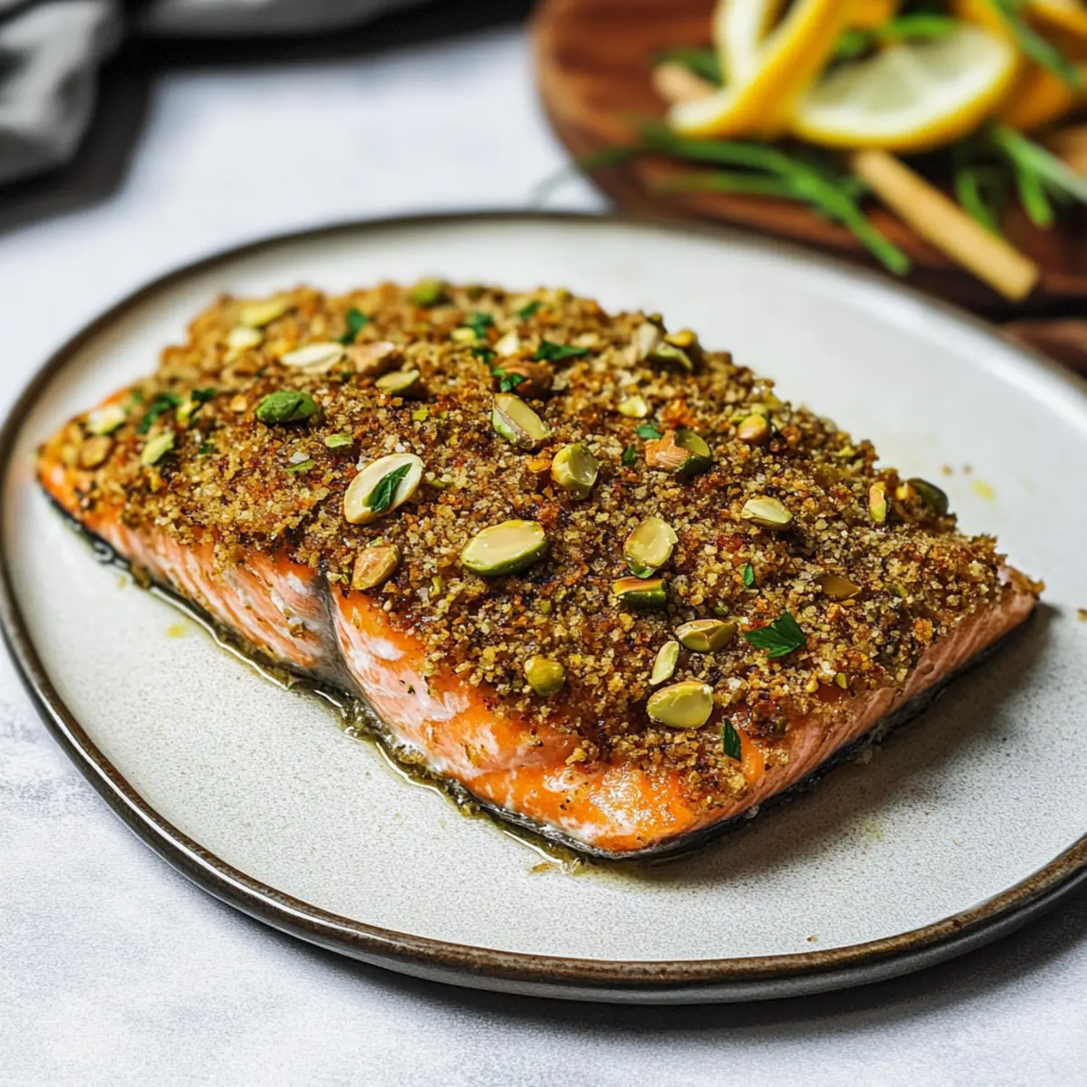 These variations not only help personalize your buttery pistachio crusted salmon but also keep mealtime exciting. If you’re inspired, check out our delicious Cranberry Pistachio Shortbread or the decadently creamy Pistachio Gelato Home for more ways to enjoy this rich nut!