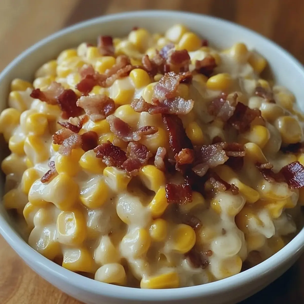 Creamy Slow Cooker Cheddar Corn with Bacon Bliss