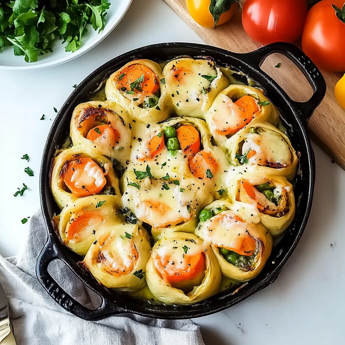 These Cheesy Baked Vegetable Rolls are perfect for meal prep enthusiasts! You can prepare the dough and the filling up to 24 hours in advance, storing each component separately in the refrigerator to maintain freshness. Simply wrap the dough in plastic wrap and place the filling in an airtight container. When you’re ready to bake, roll out the dough, spread the filling, assemble the rolls, and brush with melted butter. Pop them in the oven for about 20-25 minutes, and enjoy restaurant-quality results without any hassle. This way, you can effortlessly enjoy a delightful, homemade meal on busy weeknights!