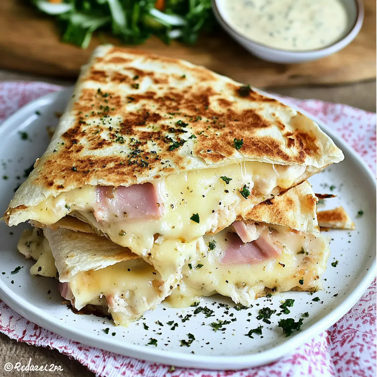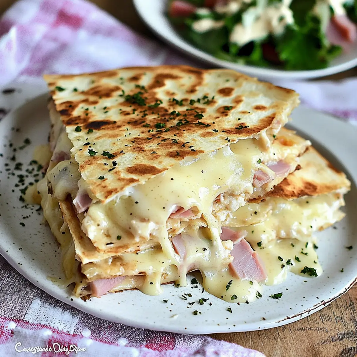 Now you’re just a few steps away from creating these mouthwatering Chicken Cordon Bleu Quesadillas! Ready to dive in?