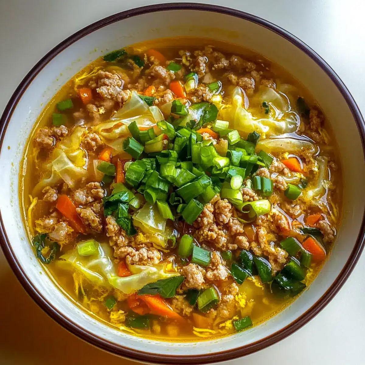 As I stirred the pot, an inviting aroma wafted through the kitchen, instantly transporting me to my favorite takeout joint—but this time, I was in control. This Cozy & Easy One-Pot Egg Roll Soup combines the savory goodness of ground pork with vibrant cabbage and a kick of zesty ginger, all in just one pot. Perfect for chilly evenings or when you need a comforting meal in a flash, this recipe offers a nourishing solution that fits seamlessly into a clean-eating lifestyle. Moreover, it’s so simple to whip up that you can impress your family without sacrificing your precious time. Are you ready to discover how to bring those beloved egg roll flavors to your table in a heartwarming bowl of soup?