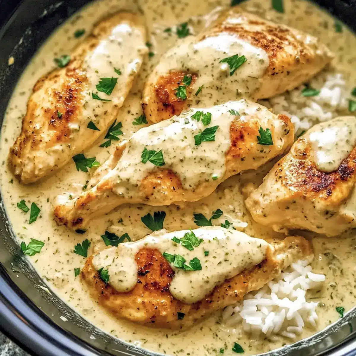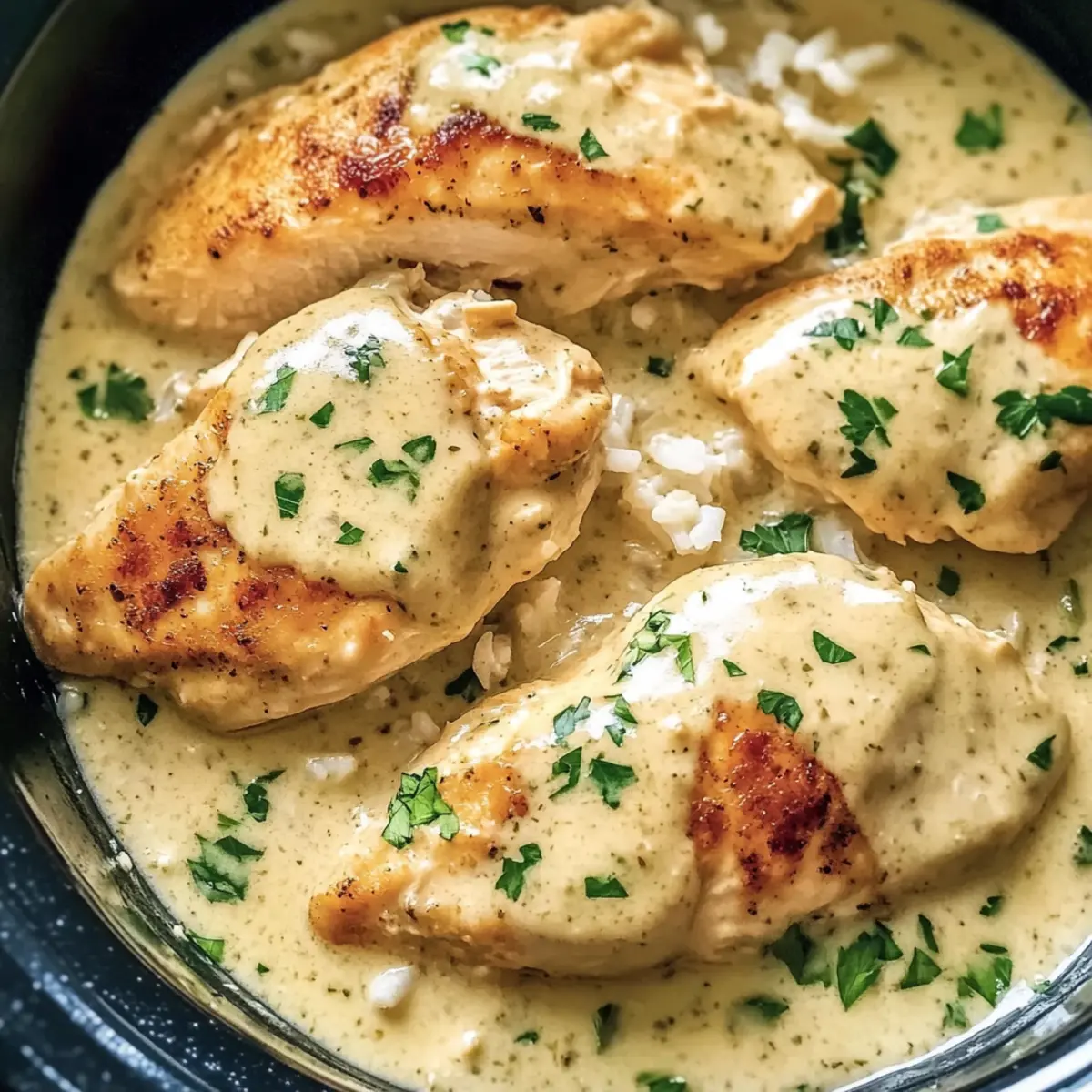 Busy home cooks will love how the Creamy Crock Pot Ranch Chicken can be prepped in advance! You can prepare the sauce (cream of chicken soup, ranch seasoning, chicken broth, garlic powder, onion powder, and black pepper) up to 24 hours ahead and store it in the refrigerator. Additionally, sear the chicken breasts, let them cool, and add them to the sauce before refrigerating to keep flavors locked in. When you’re ready to cook, simply transfer the mixture to your slow cooker and set it on LOW for 6-7 hours or HIGH for 3-4 hours. This approach not only saves time on those busy weeknights but ensures you’ll enjoy a delicious, comforting meal just as if you made it fresh!