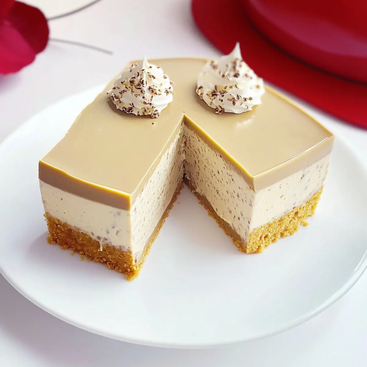 Begin by crushing the caramel biscuits into fine crumbs using a food processor or a rolling pin. Melt the unsalted butter and mix it with the biscuit crumbs until the texture resembles wet sand. Firmly press this mixture into the bottom of a lined round mold, ensuring an even layer. Refrigerate the base for about 10 minutes to allow it to set before adding the mousse.