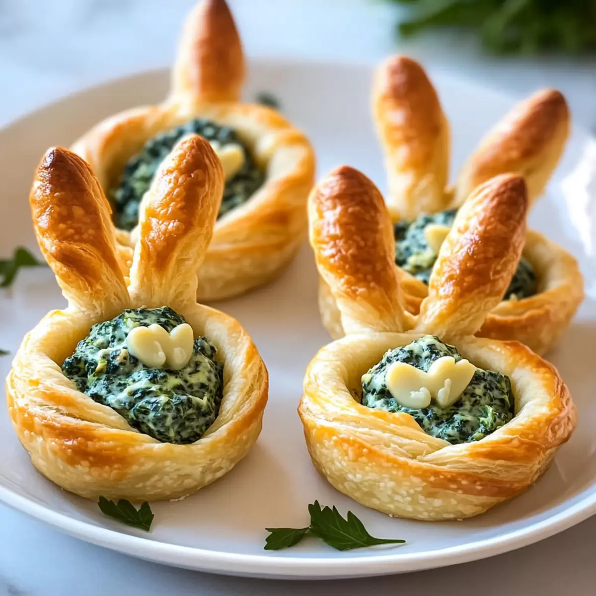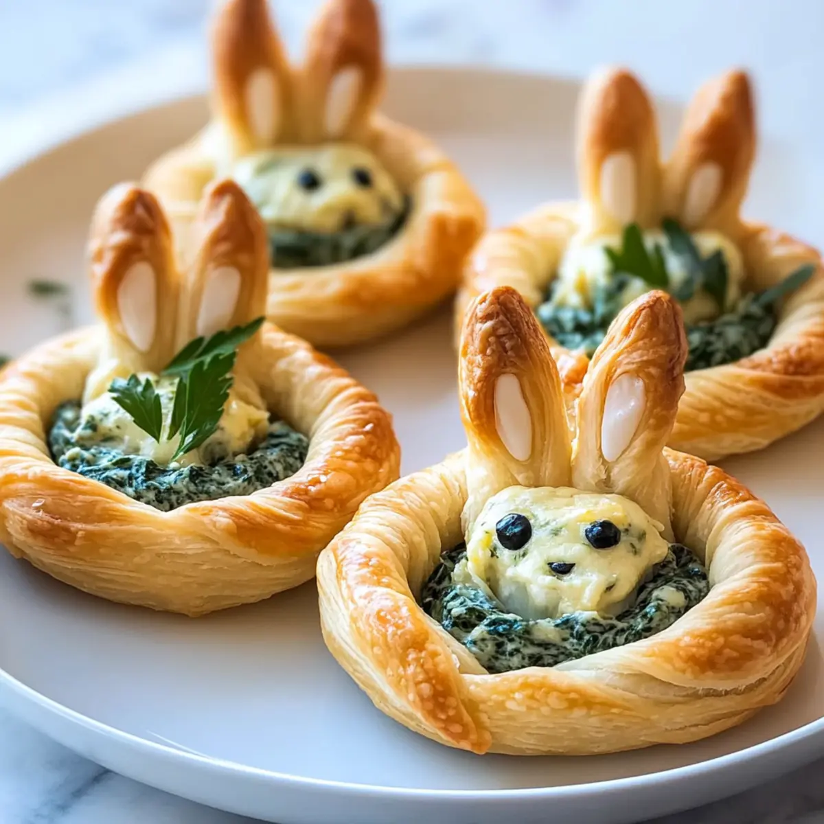 These Easter Bunny Crescent Bites are perfect for busy home cooks looking to save time! You can prepare the spinach-artichoke filling up to 24 hours in advance; just store it in an airtight container in the refrigerator to keep it fresh and flavorful. Additionally, you can bake the crescent cups in advance and store them at room temperature for up to 3 days, ensuring they remain crispy. When you’re ready to serve, simply fill the baked cups with the prepared filling and insert the bunny ears just before presentation. This way, you’ll have delightful, whimsical bites that are just as delicious as if made fresh on the spot—ideal for spontaneous gatherings!