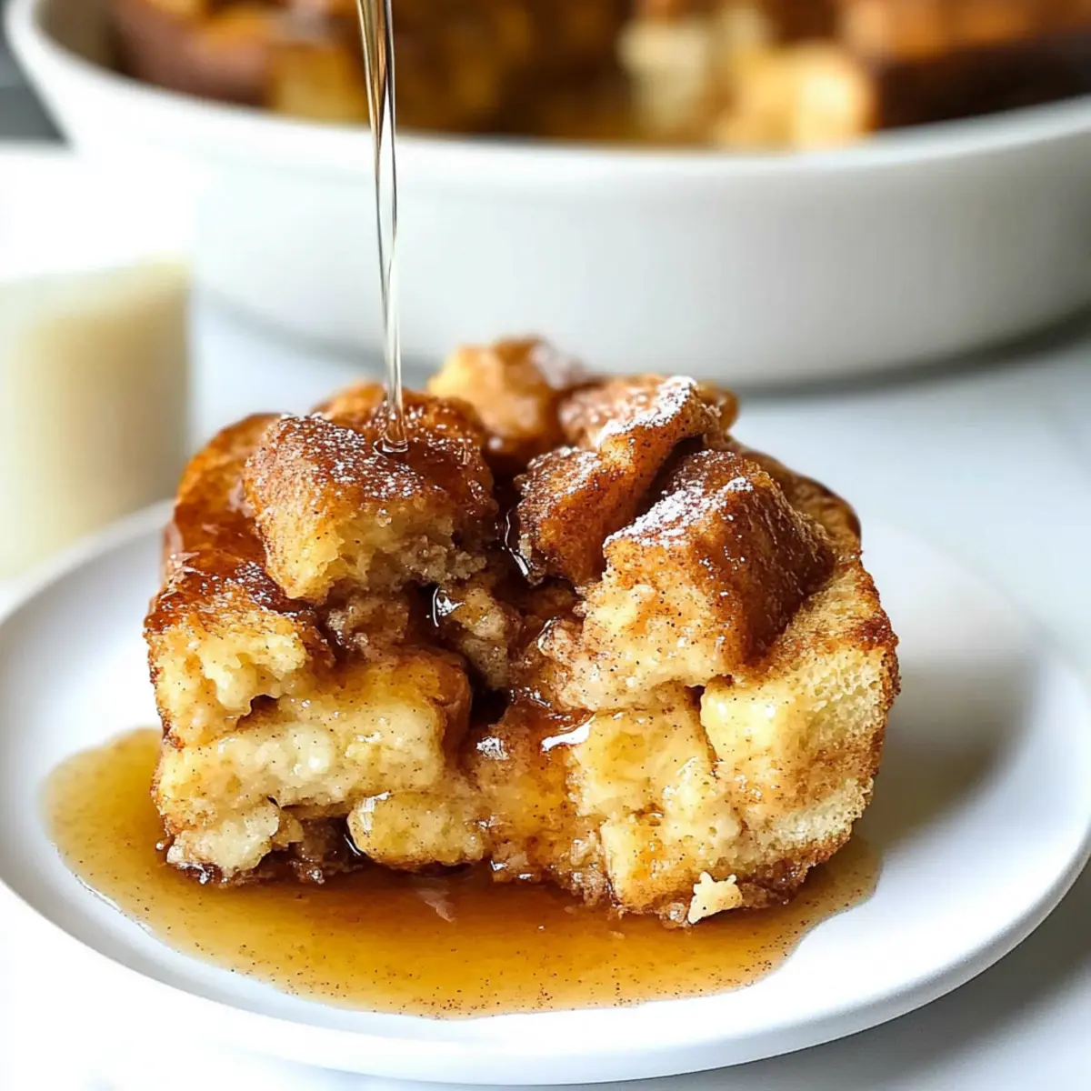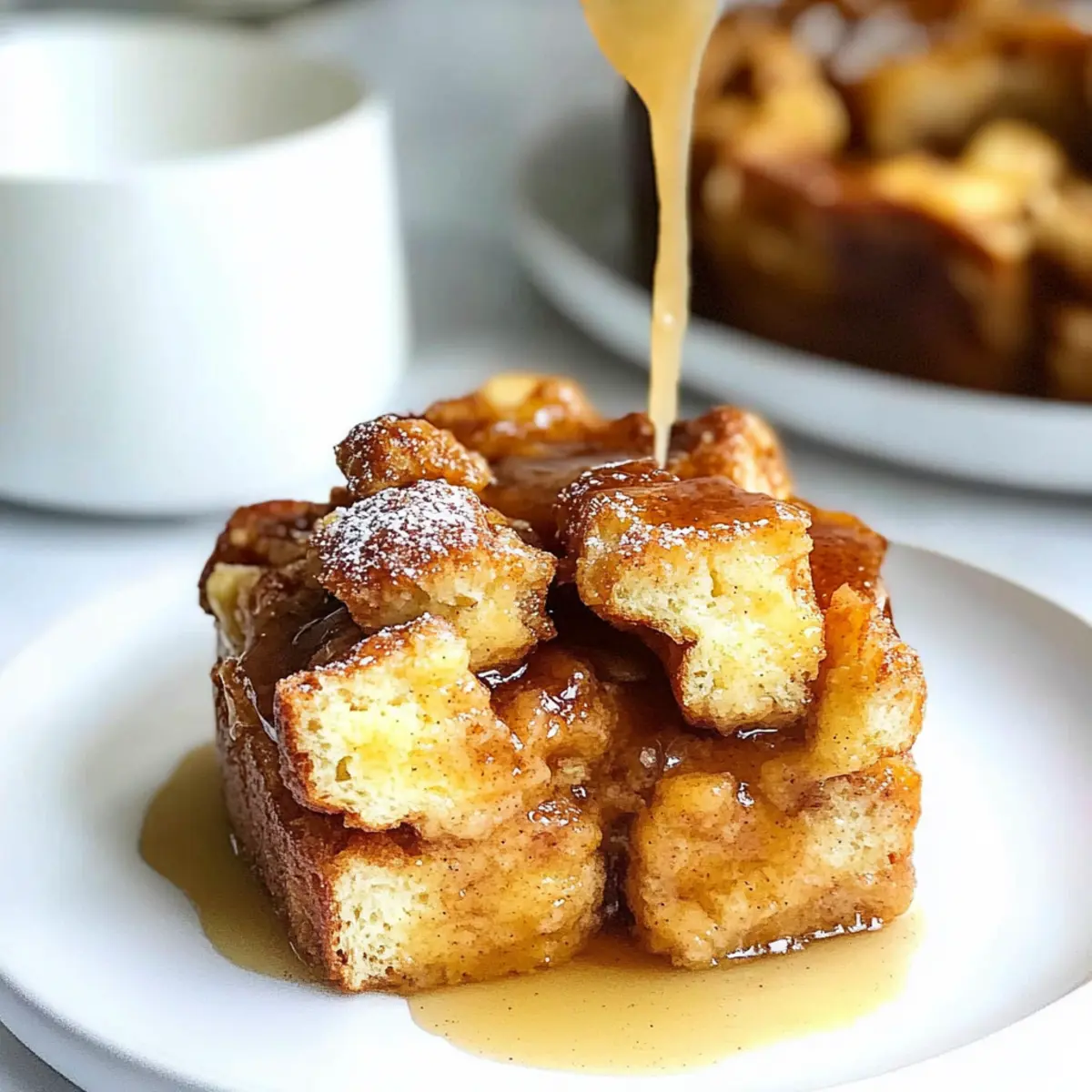 Warm Maple Syrup: A drizzle of syrup creates a decadent finish, enhancing the aromatic cinnamon and vanilla notes of the casserole.