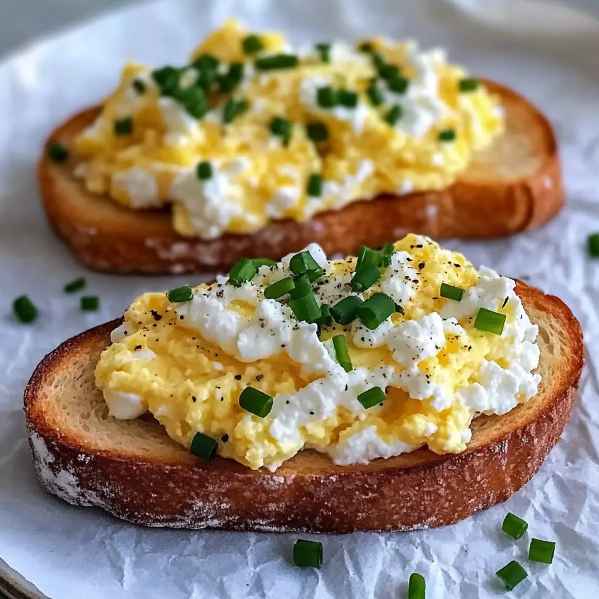 Creamy, Velvety Texture: This toast features a stunning combination of silky ricotta and perfectly scrambled eggs, making every bite a delight.