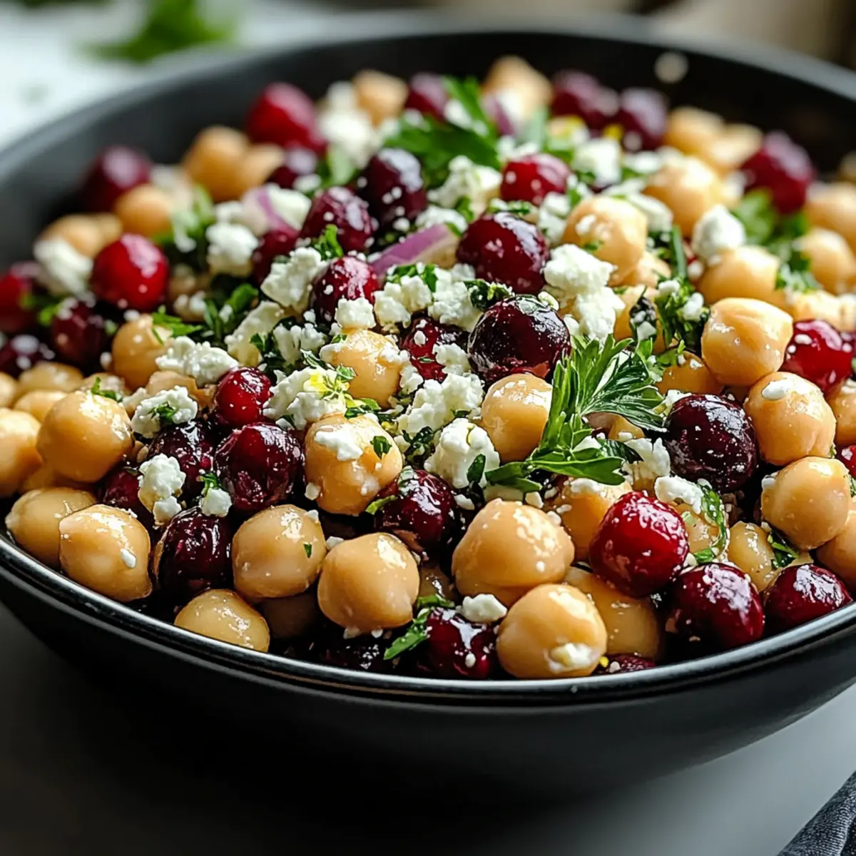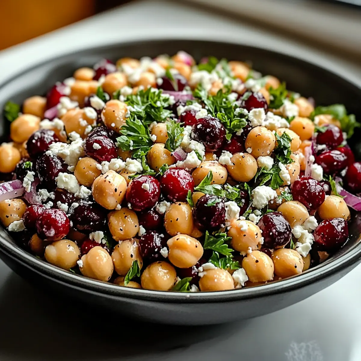 As I tossed the colorful ingredients into a bowl, a burst of excitement filled the kitchen. The Feta & Cranberry Chickpeas with Lemon Vinaigrette is not just a salad; it’s a vibrant celebration of flavors that brings a zing to any meal. With its effortless prep time of only 10 minutes, this dish is perfect for busy weekdays or impromptu gatherings, delivering both nutrition and taste in one beautiful serving. Every bite combines the protein-packed goodness of chickpeas, the creamy tang of feta, and the delightful sweetness of cranberries, ensuring it’s a hit for everyone at the table. Plus, it’s a breeze to customize—whether you’re a vegetarian or simply looking for a quick, healthy option, this salad will effortlessly become a staple in your meal prep. Ready to discover how to create this refreshing dish that brightens your day? Let’s dive into the recipe!