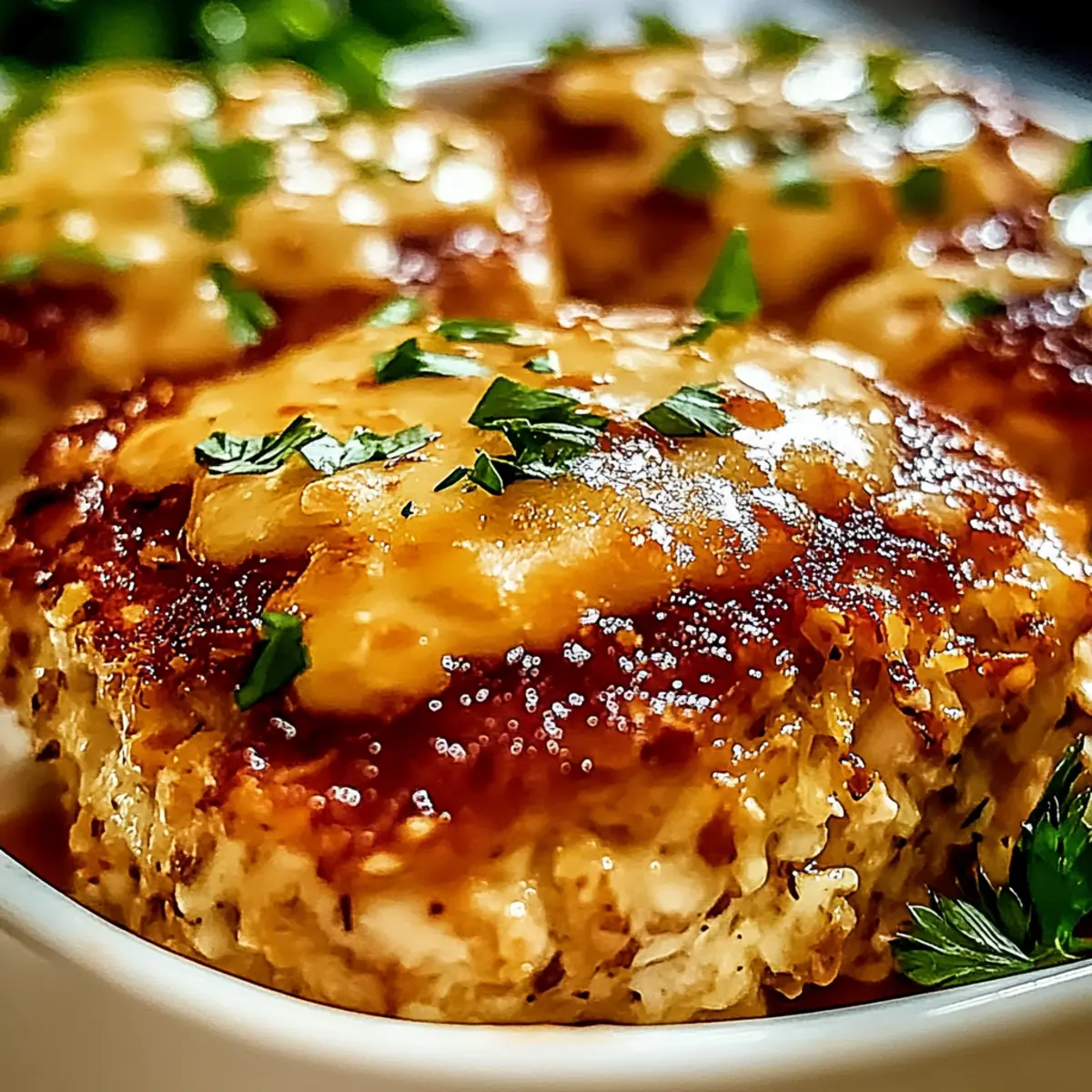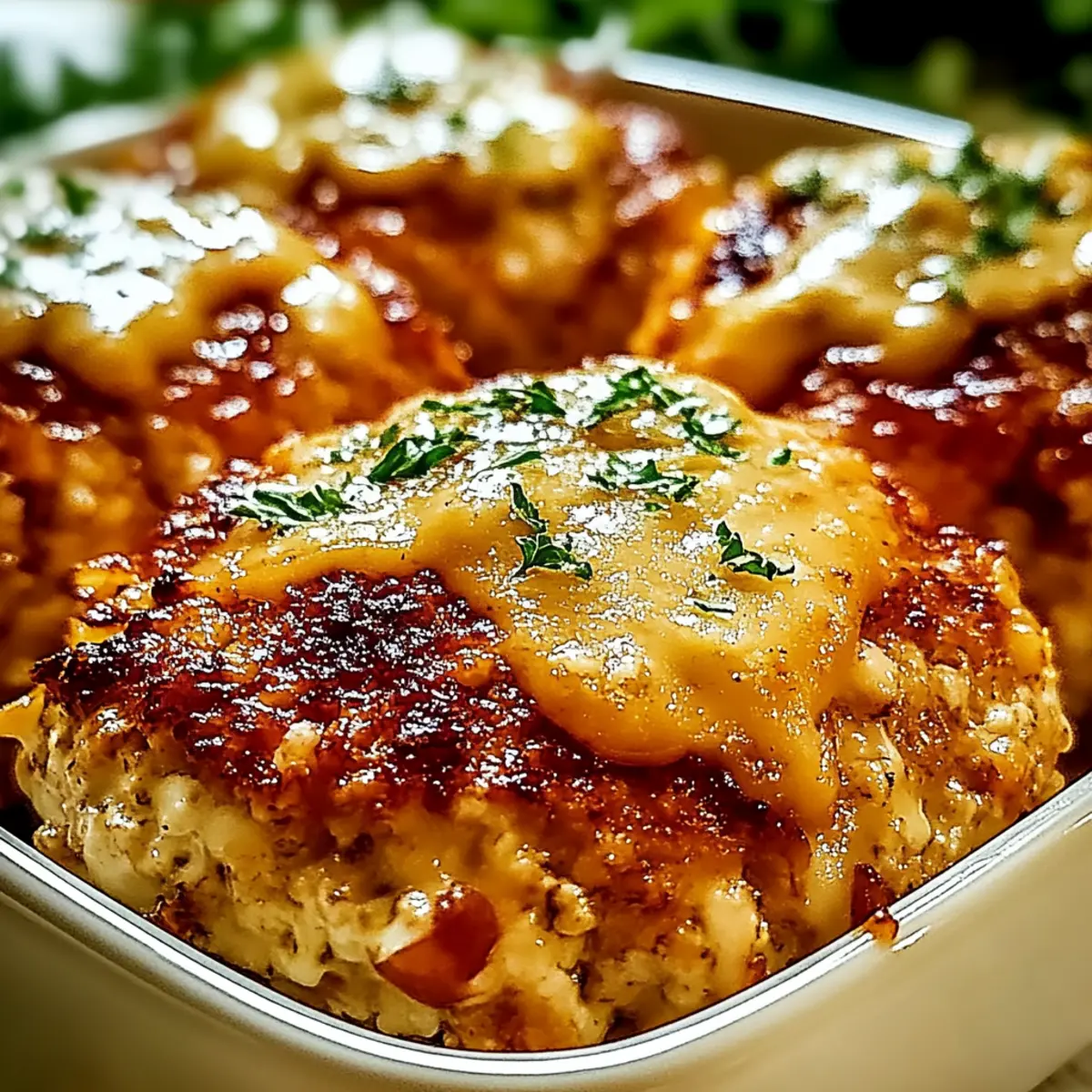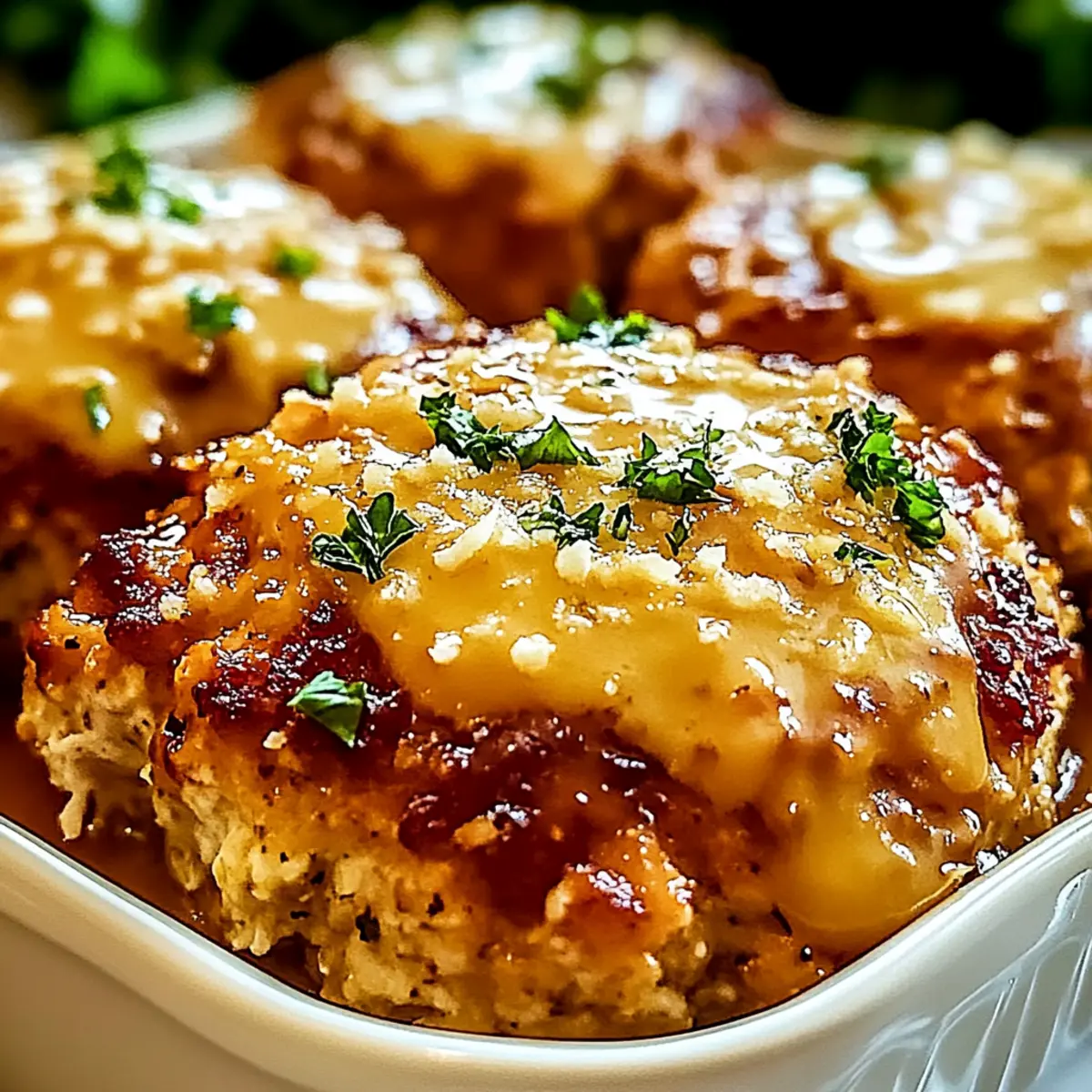 Once the Garlic Parmesan Chicken Meatloaves are fully baked, carefully remove them from the oven. Spoon the creamy sauce generously over each meatloaf just before serving. For an extra touch of freshness, garnish with chopped parsley, and enjoy the delightful flavors of this comforting dish!