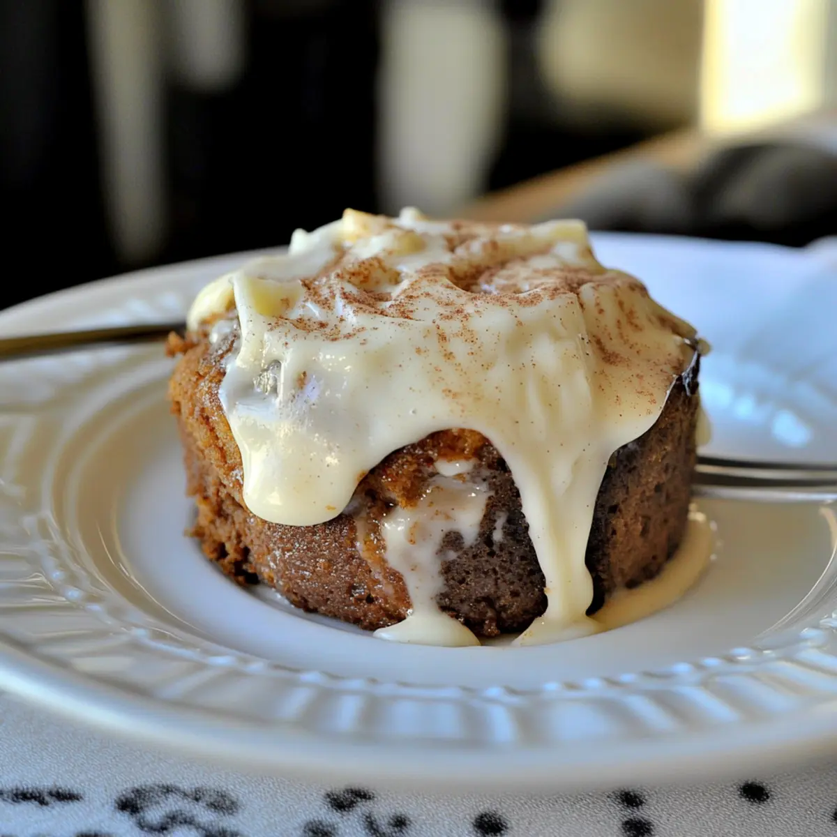 Drizzle the buttery glaze over your Keto Cinnamon Roll Mug Cake, ensuring it seeps into the warm cake. Then, spread the cream cheese frosting generously on top. Serve immediately for the best taste and enjoy the comforting flavors of this quick and easy dessert!