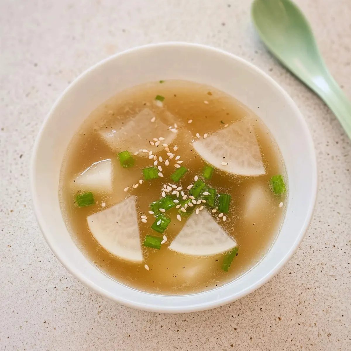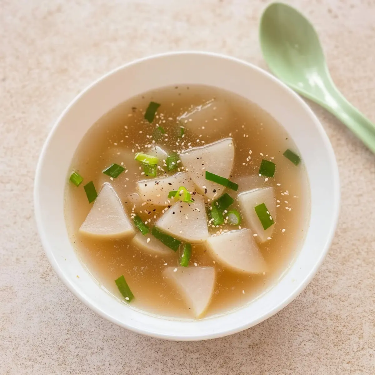 As I stood in my cozy kitchen, the scent of simmering garlic and fresh radish enveloped me like a warm hug. This Vegan Korean Radish Soup, or Mu Guk, is a delightful journey into the world of comfort food, offering a nourishing bowl brimming with vibrant flavors. Featuring hearty daikon radish in a savory kombu-garlic broth, this recipe is a perfect union of simplicity and satisfaction. What I love most about this dish is how quickly it comes together—ready in just 30 minutes, it’s ideal for those frantic weeknights or a leisurely weekend lunch. Health-conscious yet deeply comforting, each bowl is a reminder that homemade food doesn’t have to be complicated. So, are you ready to ladle up some comfort in a bowl?