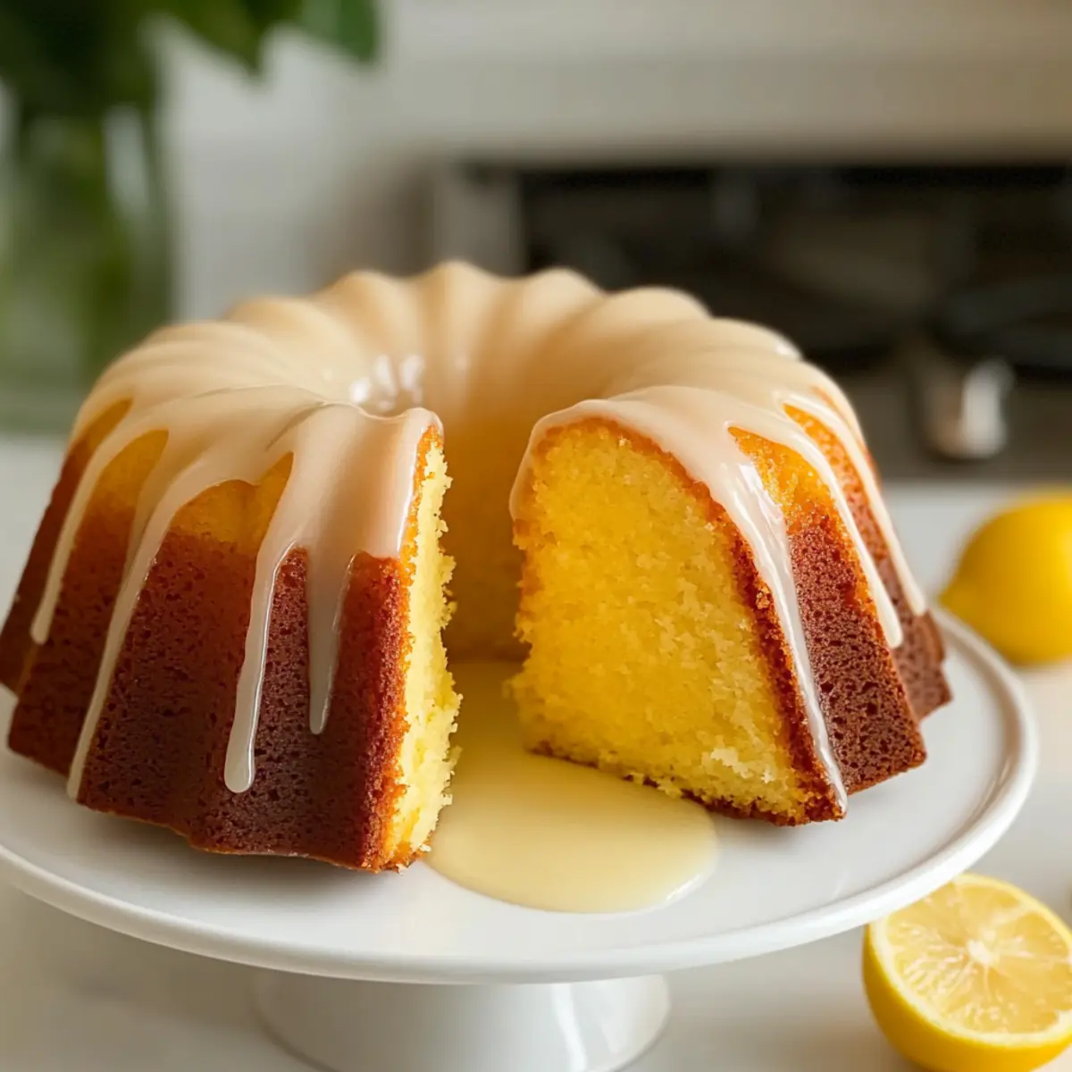 For the glaze, combine 1 cup of powdered sugar with 2 tablespoons of fresh lemon juice and 1 tablespoon of milk in a separate bowl. Mix until smooth and pourable. This sweet, tangy glaze will create a beautiful finish when drizzled over the cooled Lemon Cake, adding both flavor and visual appeal.