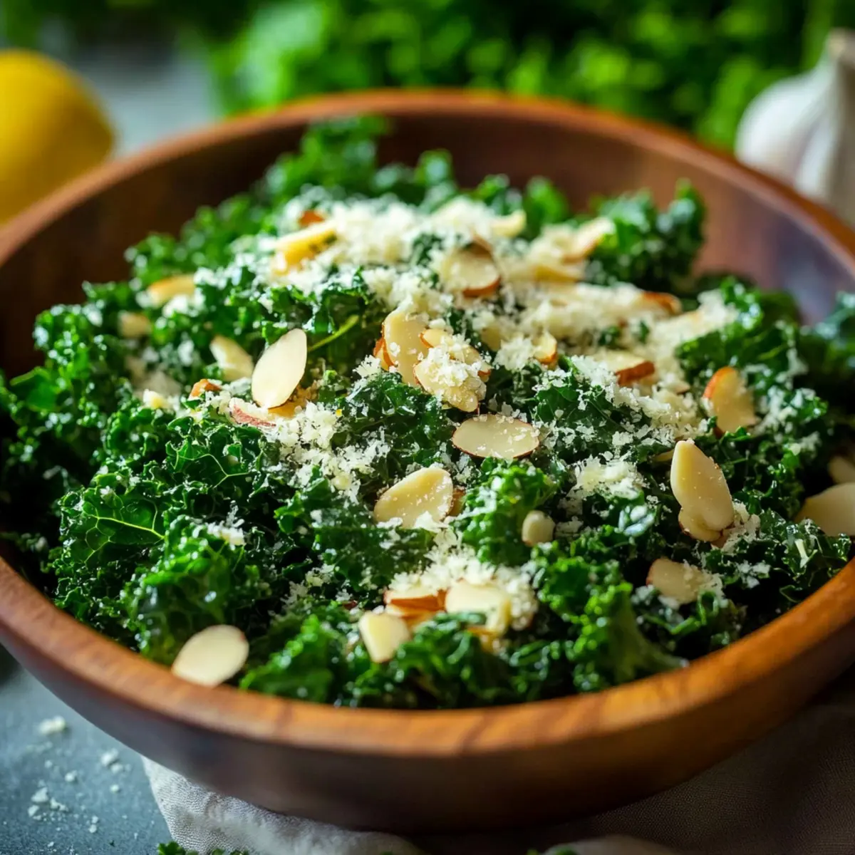 - Your Lemon Kale Salad with Garlic and Parmesan is now ready to enjoy! Serve immediately.