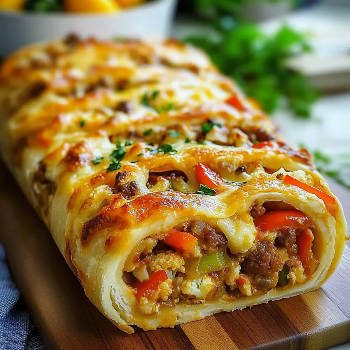 Sprinkle the top of the rolled Garbage Bread with garlic powder and grated Parmesan cheese to enhance the flavor. Finish it off with a sprinkle of fresh parsley for a pop of color. The garlic aroma will fill your kitchen as it bakes, adding to the cozy atmosphere of comfort food creation.