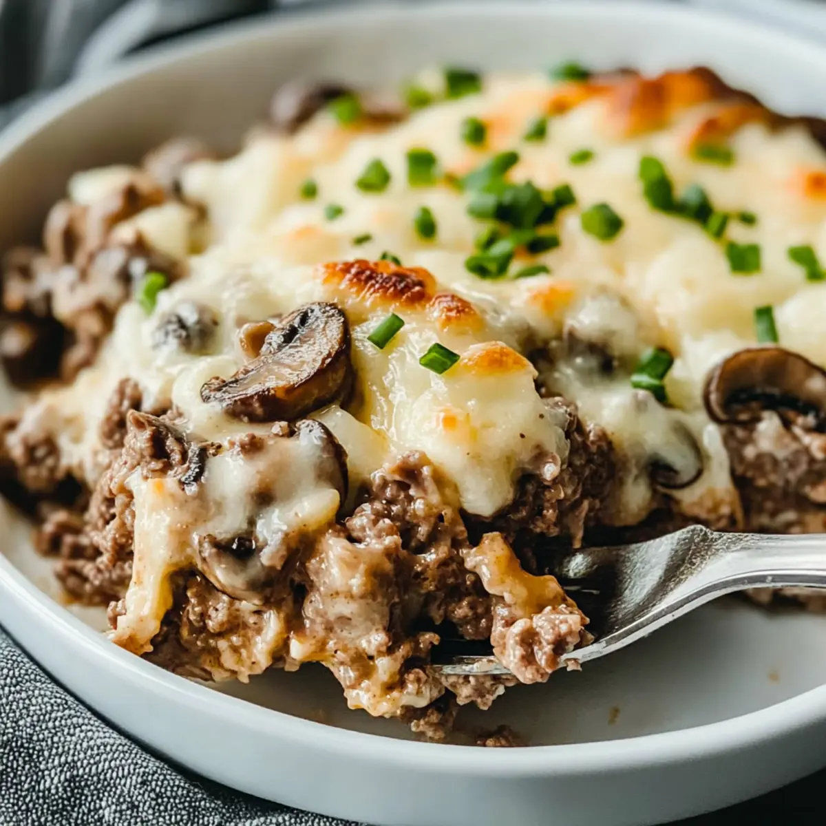 These Mushroom Cheeseburger Casserole preparations make it a breeze for busy home cooks! You can prep the entire dish up to 24 hours in advance by assembling the casserole and refrigerating it before baking. To maintain the casserole’s delightful texture, cover it tightly with plastic wrap or aluminum foil. When you’re ready to serve, simply remove it from the fridge, let it sit at room temperature for about 15 minutes to take the chill off, then bake as directed until hot and bubbly. You can also cook the beef and mushrooms ahead of time and store them in the fridge for up to 3 days. Just reheat the mixture before layering and baking for a comforting meal that’s just as delicious without the last-minute rush!