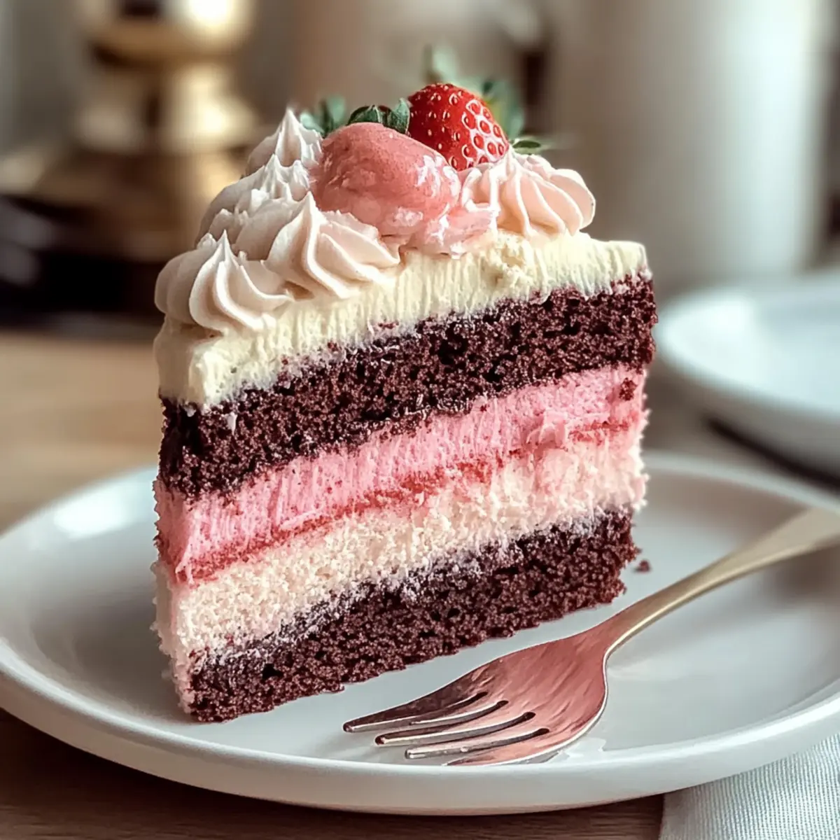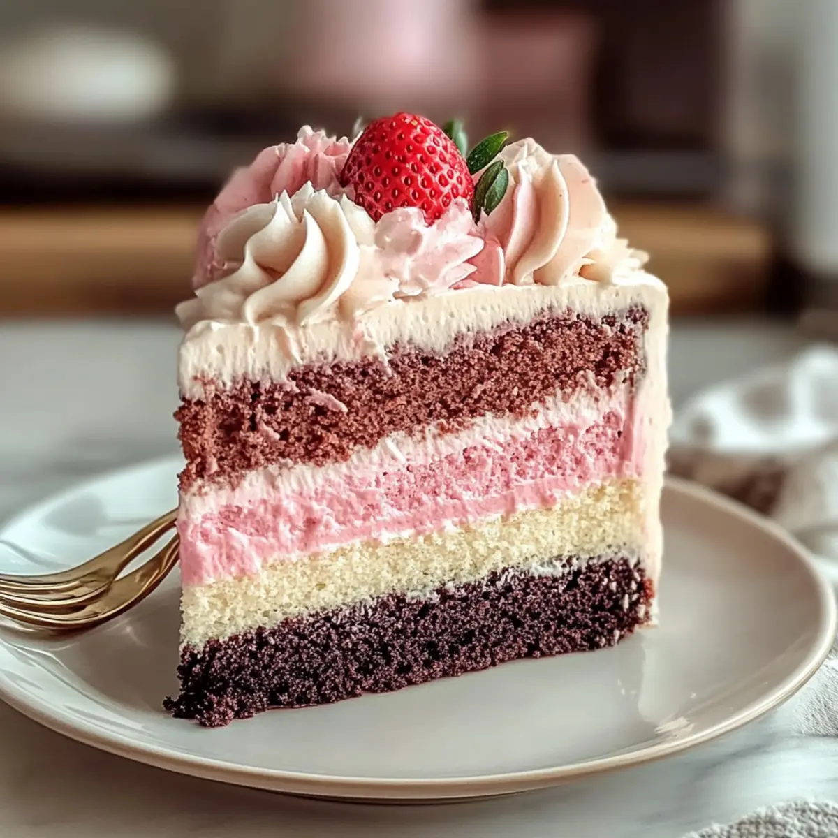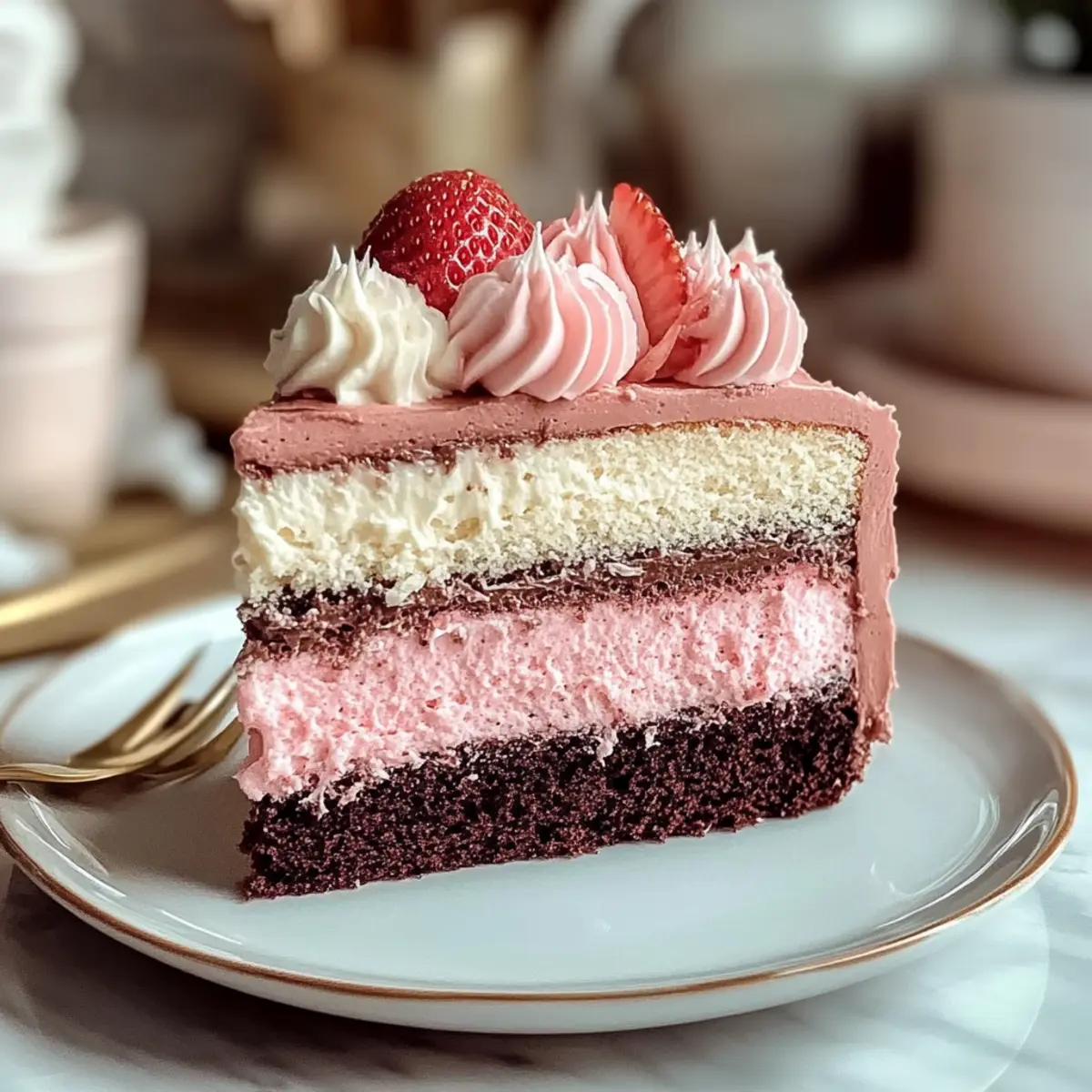 Irresistible Neapolitan Cake: Layers of Chocolate, Strawberry, Vanilla