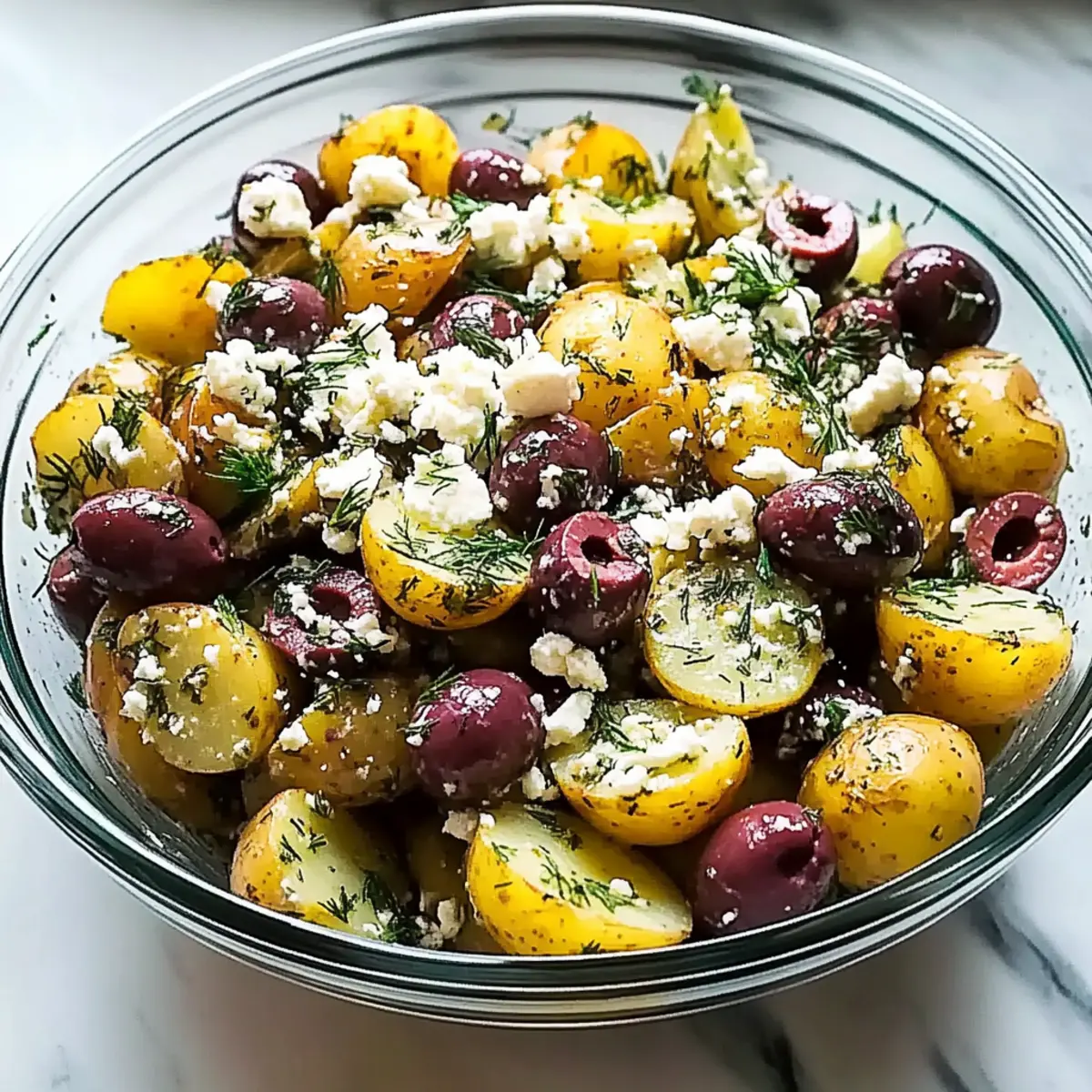Absolutely! For the best Olive Greek Potato Salad, opt for petite white or red waxy potatoes. They hold their shape well during cooking, providing a firm texture. Avoid russet potatoes, as they can become mushy and may break apart in the salad. Freshness really enhances the dish!