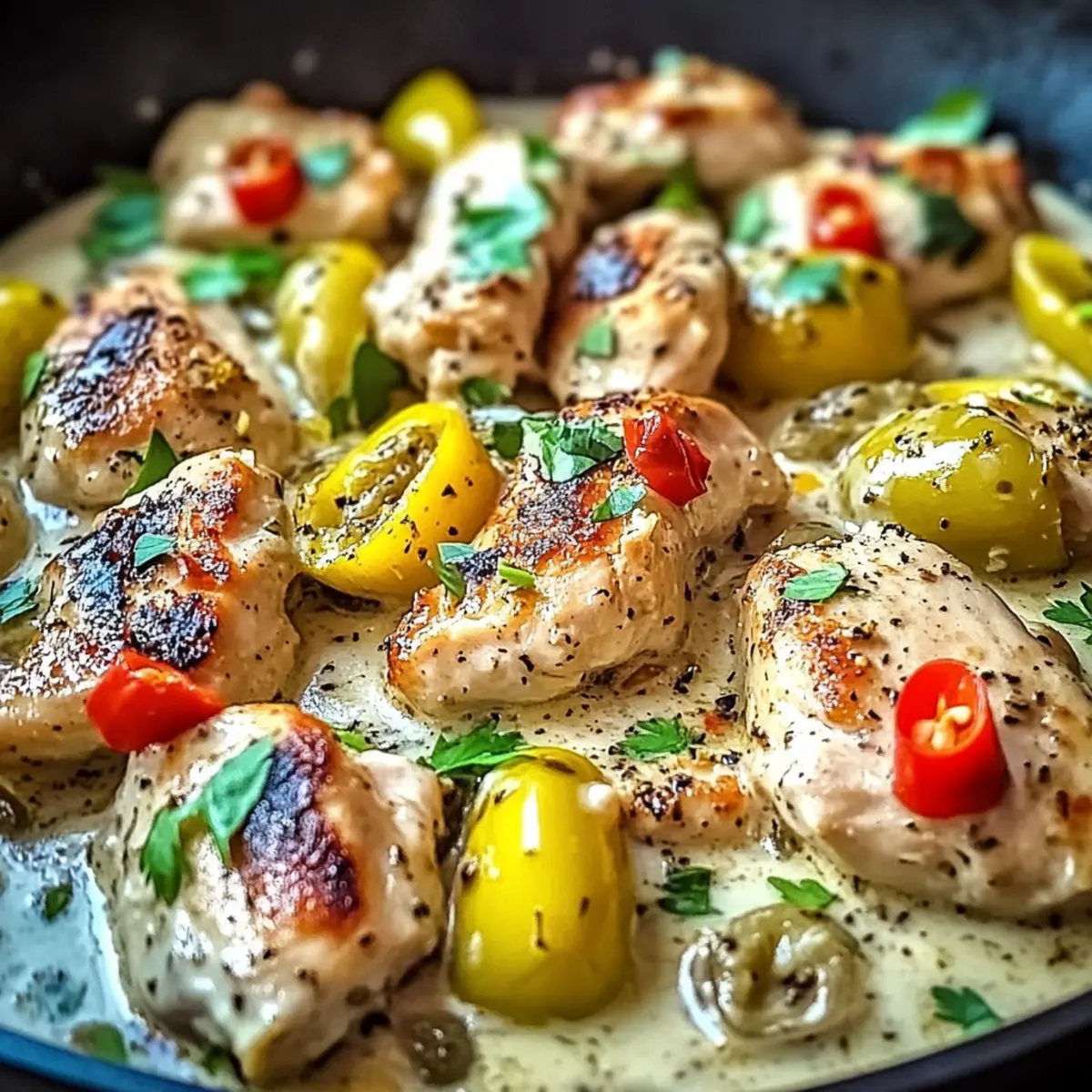 • Pepperoncini peppers – Adds a tangy kick that makes this Pepperoncini Chicken Skillet shine; use milder peppers for less heat.