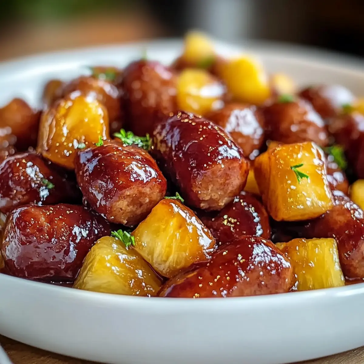 - Add Pineapple Chunks: Incorporate pineapple chunks into the mixture with the sausages.