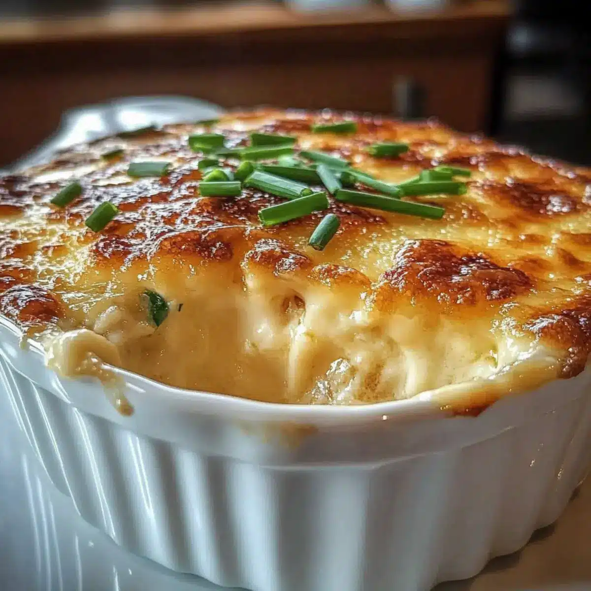 After baking, remove the dip from the oven and let it cool for a few minutes. Just before serving, sprinkle 1 tablespoon of chopped fresh chives on top for a splash of color and fresh flavor. Serve your delectable Smoked Gouda and Caramelized Onion Dip warm alongside sturdy crackers, fresh veggies, or crusty bread for an irresistible presentation!