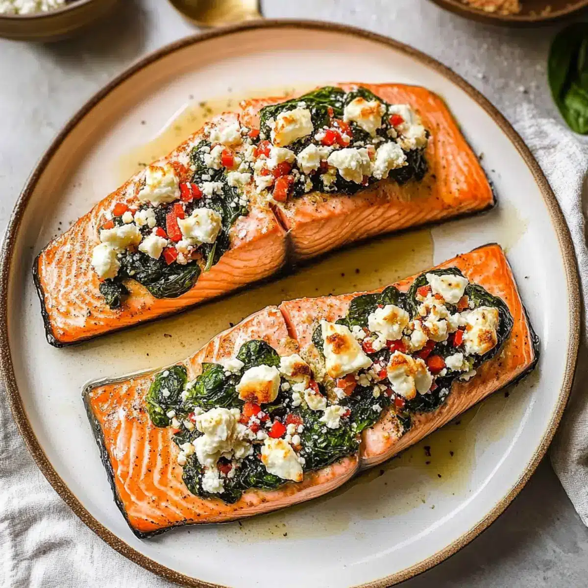 Meal Prep: Consider preparing the spinach and feta filling a day ahead; it can be stored in the fridge and simply stuffed into the salmon before baking for an easy weeknight meal.