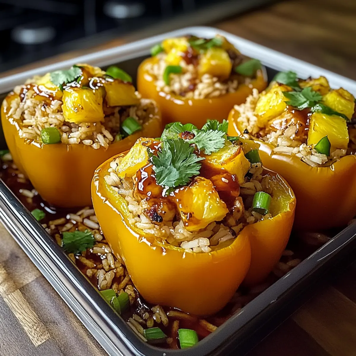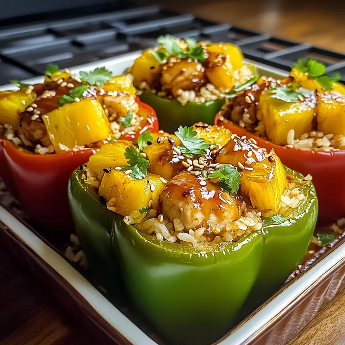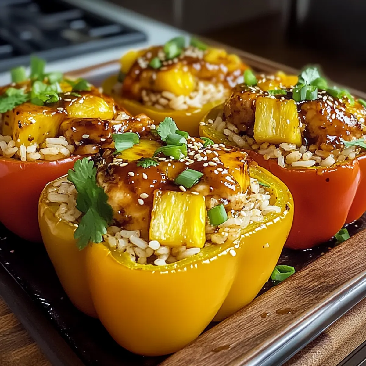 Get ready to embark on a culinary journey with these Teriyaki Pineapple Chicken & Rice Stuffed Peppers Delight!