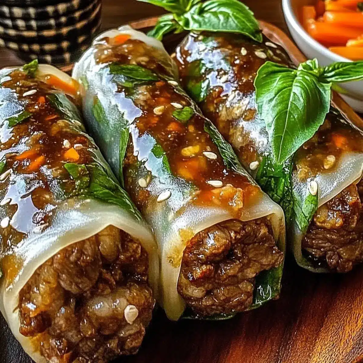 As the sun sets and the air fills with summer warmth, I find myself craving something light and fresh—like these Thai Basil Beef Rolls. A delightful fusion of savory beef, crisp vegetables, and aromatic basil dances within delicate rice paper, creating a culinary experience that feels like a sunny day in Thailand. These rolls are remarkable not only for their vibrant flavors but also for being incredibly quick to prepare—perfect for bustling weeknights or impromptu gatherings. Plus, they’re completely customizable; swap the beef for shrimp or toss in some noodles for a fun twist. Ready to dive into an easy, healthy meal that transports your taste buds? Let’s roll!