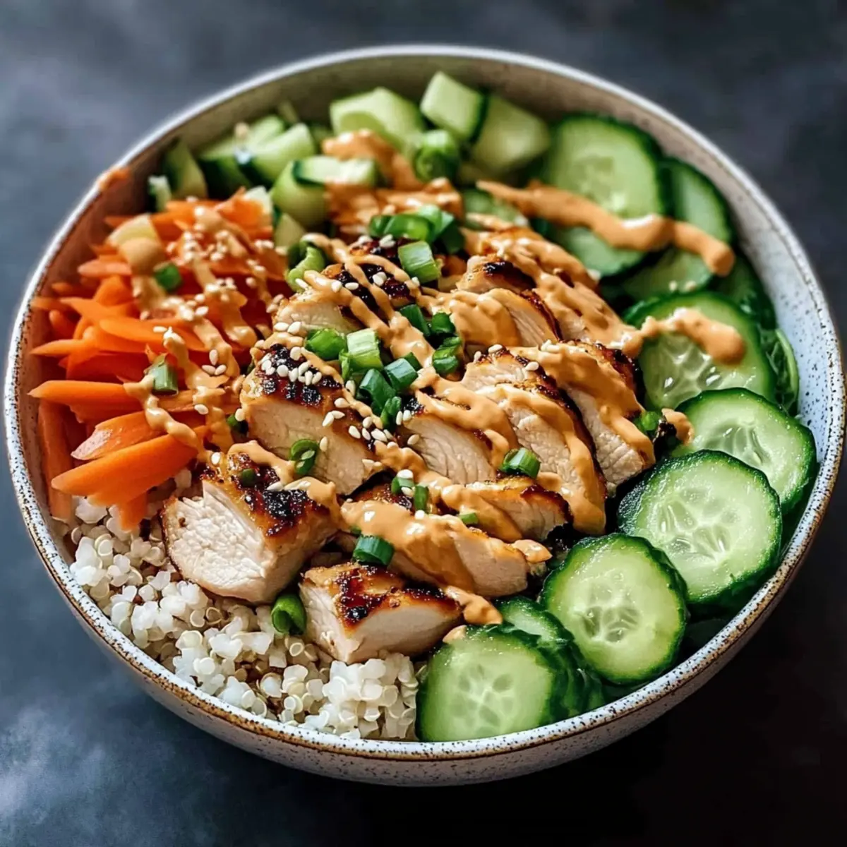 Freezer: For longer storage, freeze the cooked chicken and peanut sauce separately in airtight containers for up to 2 months. Assemble fresh veggies and grains when ready to serve.